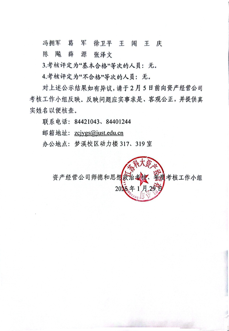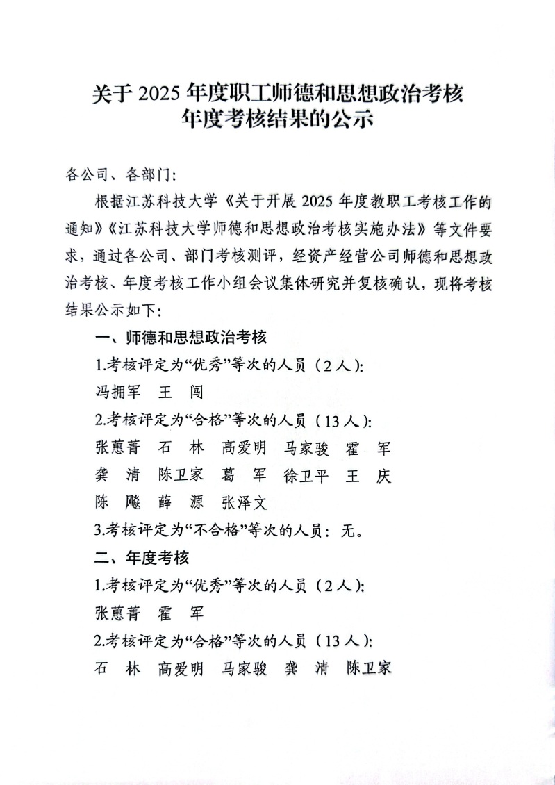 关于2025年度职工师德和思想政治考核、年度考核结果的公示